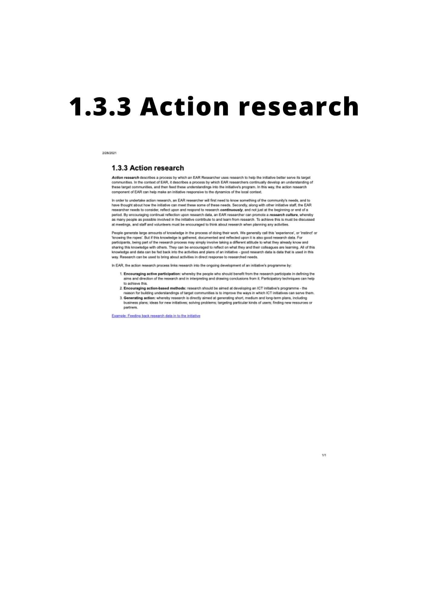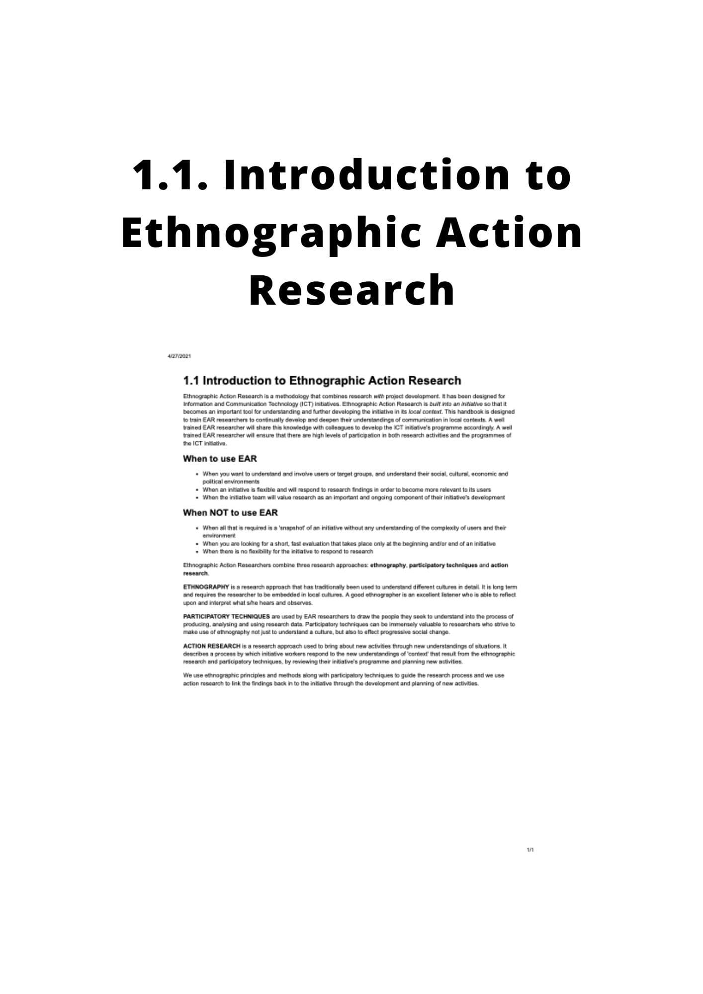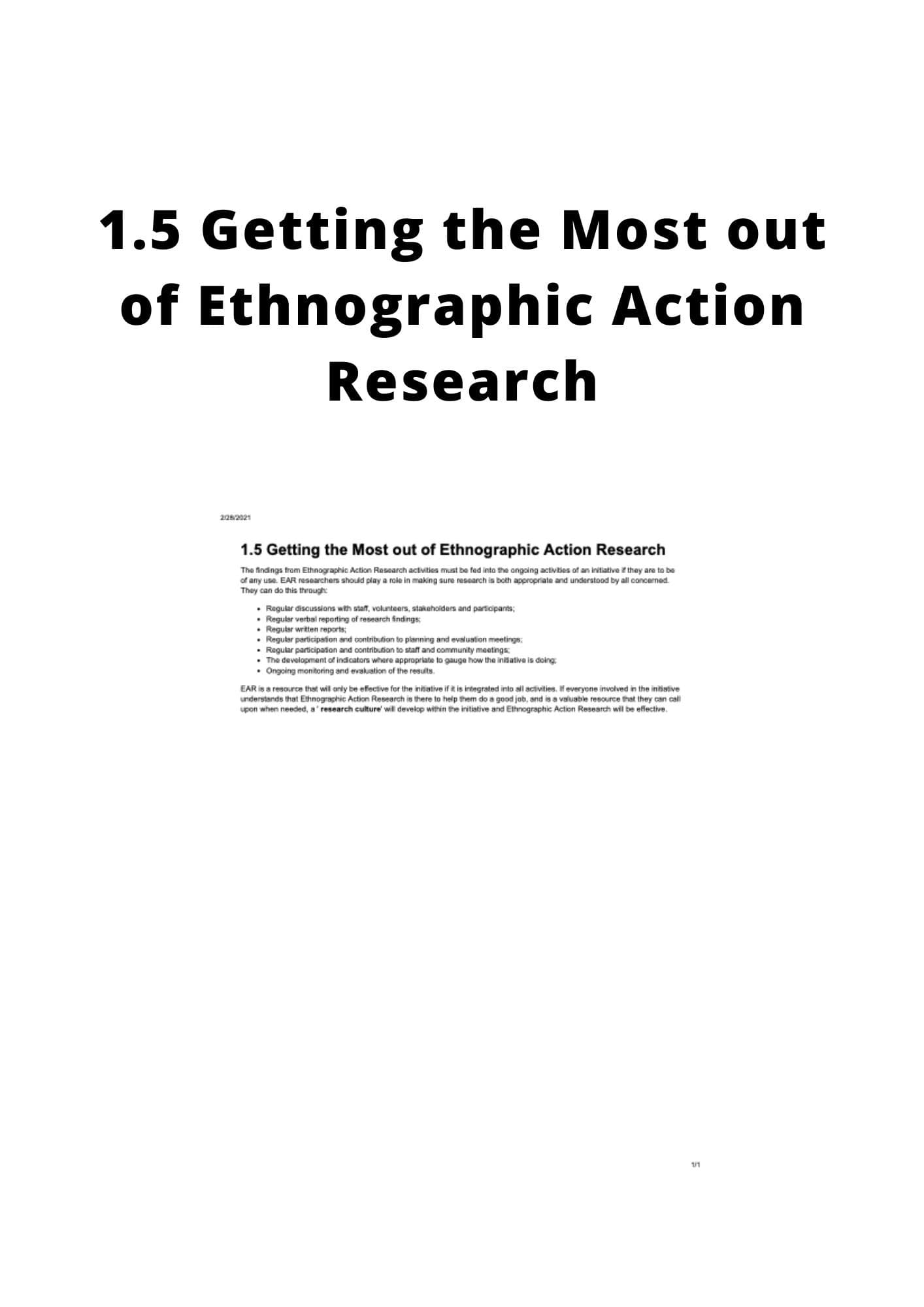 Section 4.1 of the Ethnographic Action Research Handbook