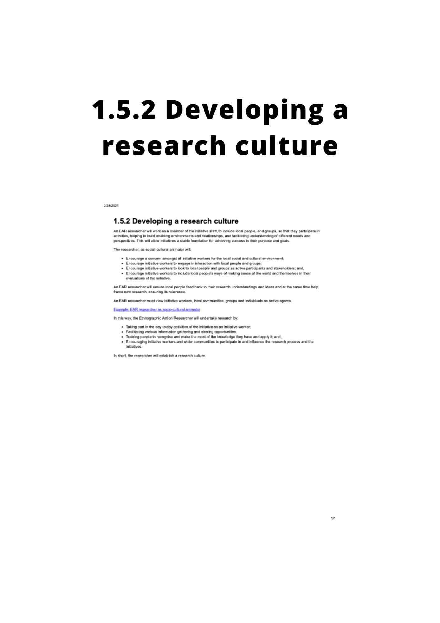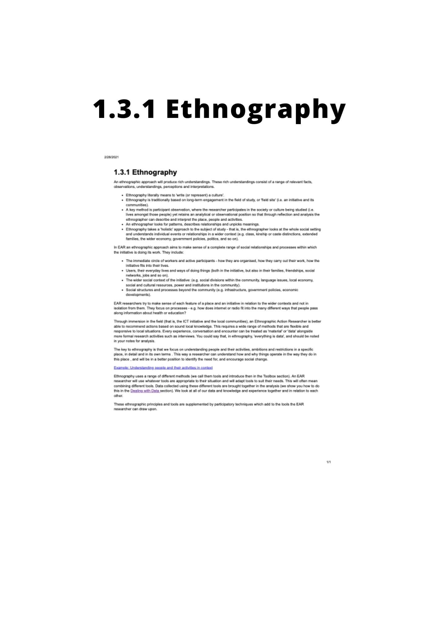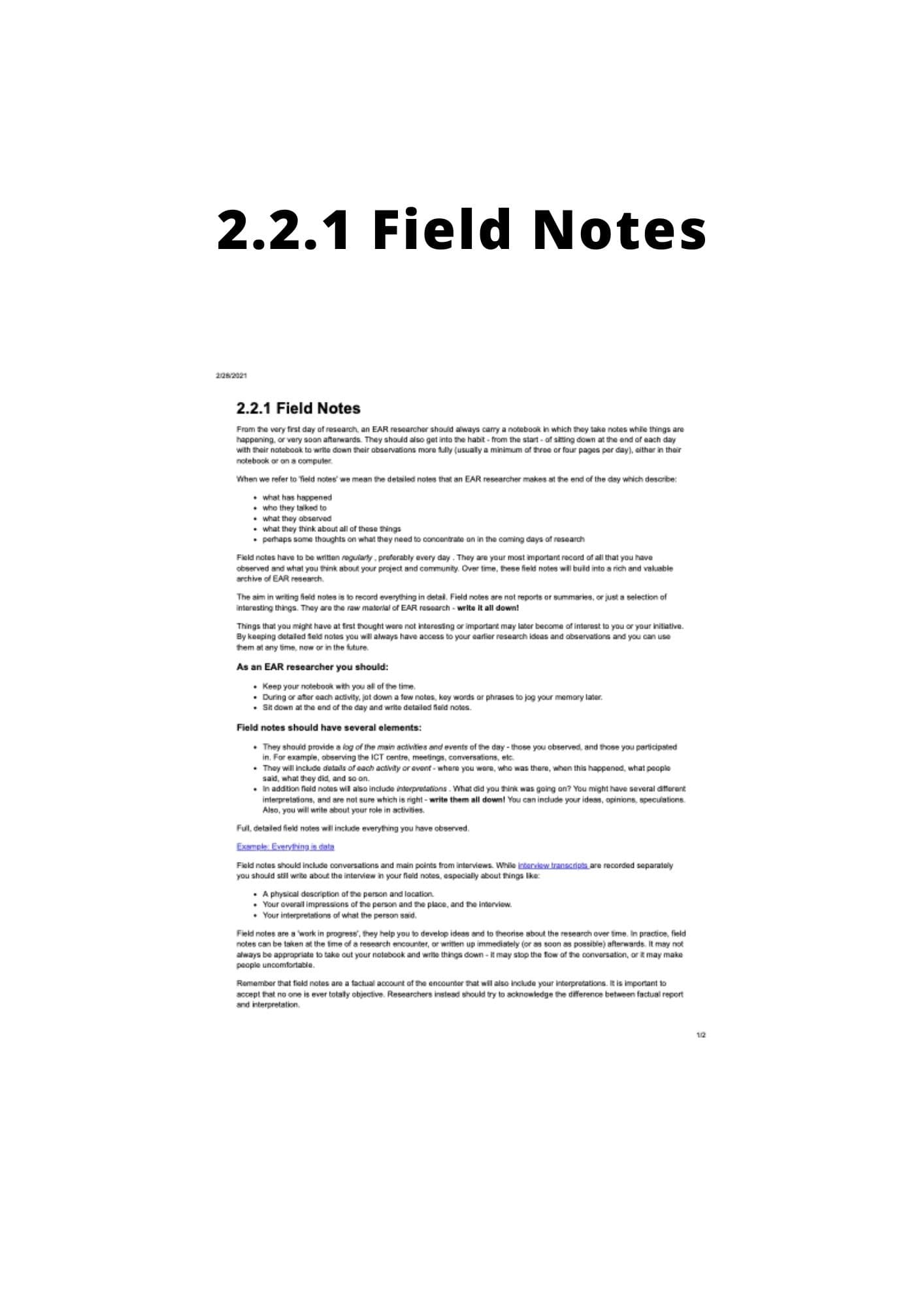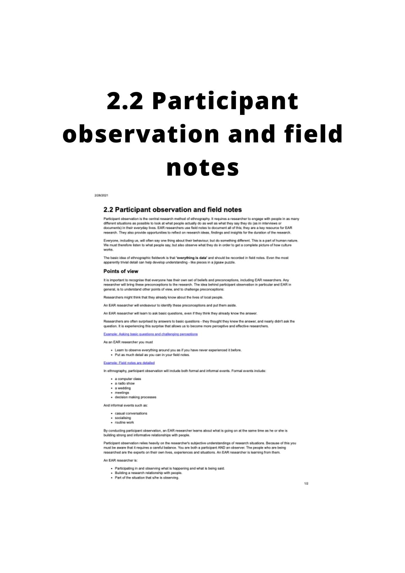 Section 4.1 of the Ethnographic Action Research Handbook