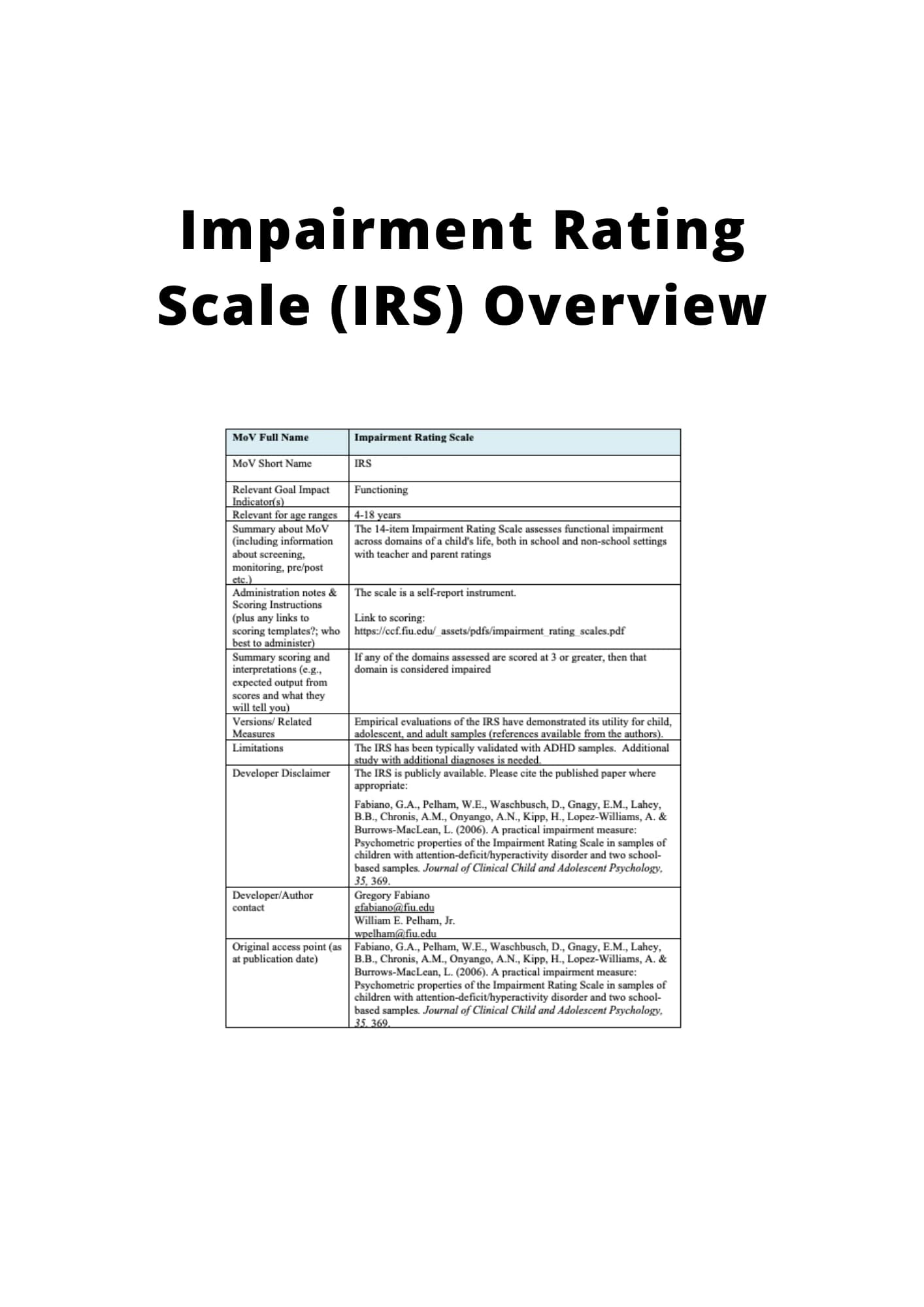 IMPAIRMENT RATING SCALE (IRS)